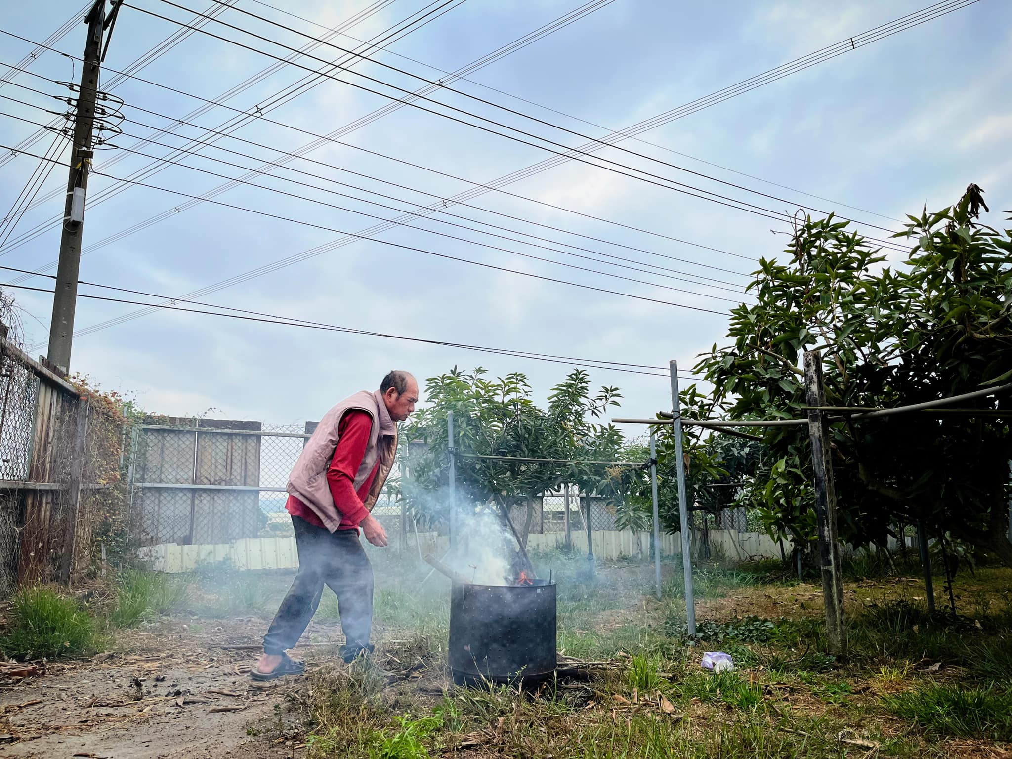 阿共站在不遠的坡上, 一邊抽著菸, 一邊望著即將隱沒的晚霞。