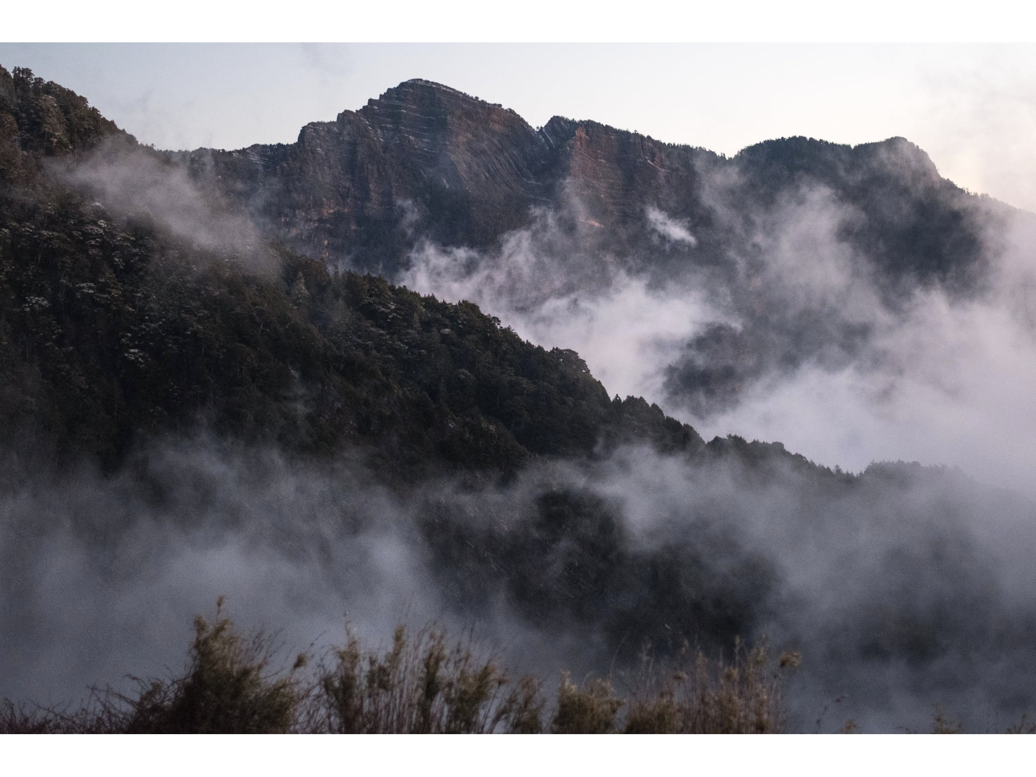 我告訴俊逸:「我們好像很少在山上天氣不好的時候拍攝,難得有憂鬱的景色也不錯。」