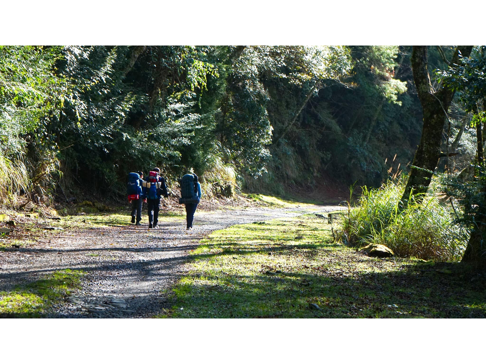 一早從登山口出發, 天色還微微灰, 林道入口被薄霧籠罩, 腳下的碎石被夜露打濕, 踩下去會發出悶悶的「喀」聲。
